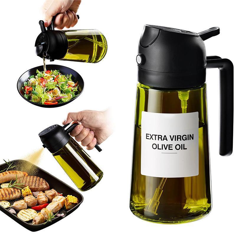 Modern Multifunctional 2 in 1 Glass Oil Dispenser 1 Count Oil Sprayer with Handle, Oil Dispenser for Cooking, Baking, Frying, Transparent Kitchen Utensils & Gadgets, Bottle